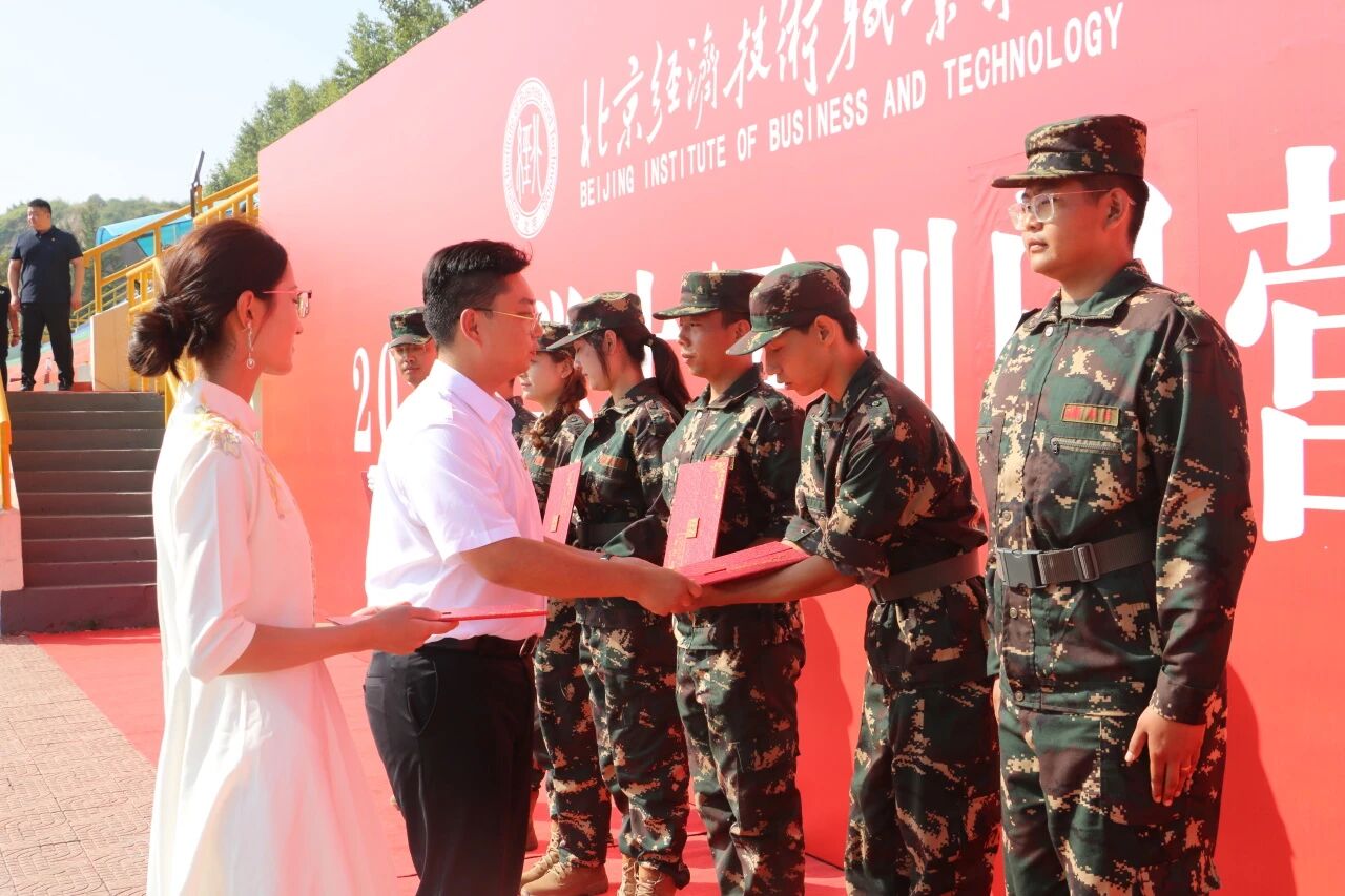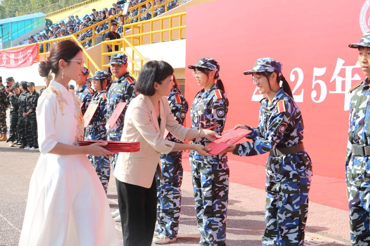 办公室主任胡静微宣读《关于表彰2025年军训先进集体与优秀个人的决定》。为表彰军训中的先进,树立榜样,推动军训及国防教育工作,北京经济技术职业学院依据相关方案评选并决定授予129名同学“军训标兵”,7名同学“先进训练个人”,7名 “优秀教官”,6名“优秀指导员”,6个连队“优秀连队” 荣誉称号。学院希望受表彰者再接再厉,全体学生秉承军训精神,成为新时代高素质合格大学生。
